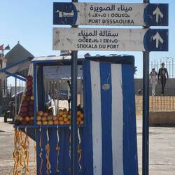 Um an unsere nächsten Etappenorte zu gelangen, wählen wir die Küstenstrasse. Eine abwechslungsreiche, stark landwirtschaftlich geprägte Region begleitet uns. Das Meer versteckt sich hinter einem Dünengürtel und die Felder erstrecken sich bis an die Küste. Die Lagune dazwischen dient der Salzgewinnung. An etlichen Ständen werden Kürbisse und Blumenkohl angepriesen. Es ist Samstag, was auch Markttag bedeutet. In einigen Städtchen müssen wir uns durch Menschen- und Fahrzeugmengen den Weg freifahren. Viele Marokkaner winken uns fröhlich zu. Wir fühlen uns richtig willkommen.