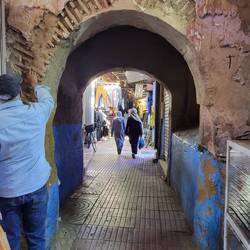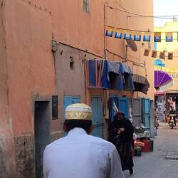 In Taroudannt gibt es zwei Märkte in der Medina. Der Hauptmarkt ist der Souk Arabe. Der Souk Berbère wird auch Marché Municipal genannt. Wir wollen heute den Souk Arabe besuchen, da wir der Meinung sind, dass wir den Berbermarkt gestern Abend bereits durchforstet haben. Auf der Place al-Alaouyine zückt Peter sein Handy hervor. Es soll uns via Google maps durch das Wirrwarr von Gassen führen. Ein netter Berber, welcher gut Deutsch spricht und anscheinend ebenfalls im Zirkus Knie gearbeitet hat, erklärt uns den Weg zu dem gesuchten Souk. Genau seinen Anweisungen folgend verirren wir uns so ziemlich in einem Wohnviertel...und oh Wunder, plötzlich steht der Berber hinter uns und führt uns auf den richtigen Weg. Raffiniert hat Rajid der nette Berber das eingefädelt...und sich aber als sehr informativen Guide geoutet. Zuerst besuchen wir den Souk Arabe. Zielstrebig führt uns Rajid zu diversen Händlern, welche natürlich "ohne Erwartungen" ihre zum Teil sehr schönen Angebote vorstellen. Ein von Hand genähter Lederpouff nennen wir nun unser Eigen. Selbstverständlich mit viel feilschen, was uns und den Händlern sichtlich Spass bereitet. Dank sei meinen Französisch-