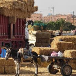 Die Weiterfahrt führt uns durch Rabat...obwohl sehr viel Verkehr herrscht scheinen die Autofahrer recht diszipliniert unterwegs zu sein. Einzige Ausnahme bilden die Taxis. Bei denen muss man immer mit abrupten stop and go rechnen. Es fahren aber auch Esel-und Pferdegespann mitten in den Autos mit. Auf den Autobahnen muss man immer wieder mit Fussgängern rechnen, welche die Fahrbahn überqueren. Auch Autostop wird gerne gemacht...
