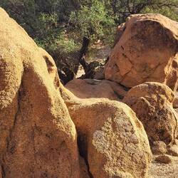 *1984 hat der belgische Künstler Jean Verame die auf einer Hochebene wie von Riesenhand verstreuten Felsbrocken mit den Farben Rot, Blau, Schwarz und Violett bemalt. Bis zu 30 Meter hoch sind die Granitfelsrn und mehr als 20'000 Kilogramm Farbe wurden verbraucht.