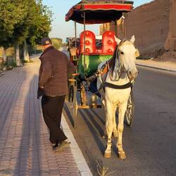 Bald erreichen wir unser heutiges Etappenziel Taroudannt. Die nächsten zwei Nächte wollen wir auf dem Camping du Jardin etwas ausserhalb der quirligen Stadt übernachten. Trotz der langen Fahrt hierhin, können wir es nicht lassen, einen kurzen Blick hinter die Stadtmauern zu werfen. Per Taxi fahren wir nach Taroudannt. Auf einer Pferdekutsche lassen wir uns anschliessend von Oumar durch die Stadt führen. Im Gspräch erzählt er uns stolz, dass er mit dieser Kutsche dem früheren Staatspräsidenten Jacques Chirac die Stadt zeigen konnte.