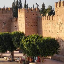 Taroudannt, die Hauptstadt der Souss-Ebene liegt vor den Gipfeln des Hohen Atlas und ist fast vollständig von einer prächtigen roten Lehmmauer umgeben. Die Stadt wird auch als Klein-Marrachesch bezeichnet. Es herrscht hier aber noch ein sehr angenehmes und authentisches Flair. Einst war Taroudannt das Zentrum des Gold- und Sklavenhandels und gehörte zu Timbuktu. (1591) Sie errichteten eine Kasbah. Diese wurde aber 1687 weitgehend zerstört. Nur die mächtigen Festungsmauern blieben erhalten.
