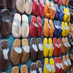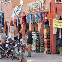 Nach gut 1 Stunde treffen wir wieder unseren Taxichauffeur, welcher uns nun zum Königspalast und das hübsche Quartier Habbous (Nouvelle Medina) fährt. Der Königspalast kann nicht besichtigt werden. So streifen wir durch den nahen Souk, in welchem hauptsächlich Einheimische einkaufen. Die Gassen sind von Arkadengängen gesäumt. Kunsthandwerk, Kleidung, Gebrauchsgegenstände des täglichen Lebens, Kräuter und Oliven werden hier feilgeboten. Ich kaufe für unsere beiden Enkelinnen und mich lederne, sehr schön von Hand verarbeitete Pantoffeln. In der Umgangssprache werden sie "Babouche" genannt.