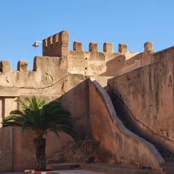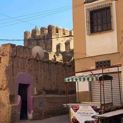 oft durch Mauern abgegrenzte und früher von hier stationierten Militäreinheiten bewachte Burg- oder Festungsanlage oberhalb oder innerhalb der Medina (Altstadt) als Kasbah bezeichnet; oft war dies auch der Aufenthaltsort des Gouverneurs oder aber des Königs bei seinen Aufenthalten in der Stadt. Ausserdem lebten die Familien der höheren Staatsbeamten und Militärs häufig innerhalb des Kasbah-Viertels. In der Nähe der Kasbah lag üblicherweise das jüdische Viertel, die Mellah, denn die Juden standen wegen ihrer Finanzkraft nicht selten unter dem besonderen Schutz des Herrschers. *[Wikipedia]