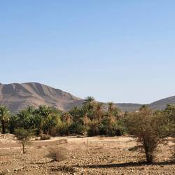 Noch liegen ungefähr 50 Kilometer vor uns, durch immer sandigere Gebiete. Zwischendurch wieder mal eine Oase.