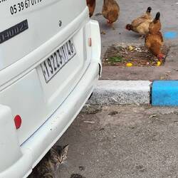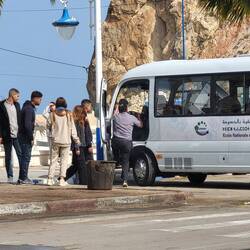 Kaum "zu Hause" angekommen, klopft es an unserer Tür. Ein höflicher junger Mann bittet uns zur Kasse. Er verlangt 50 MAD. Ich spreche ihn auf den Parkwächter mit der gelben Sicherheitsweste an...er meint nur, dass dies ein kleiner Vagabund und Bettler sei. Der Franzose neben uns bestätigt nickend aus seinem WoMo heraus. Der echte Parkwächter stellt uns eine Quittung aus, welche wir gut sichtbar hinter das Fahrer-Seitenfenster klemmen.