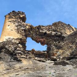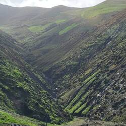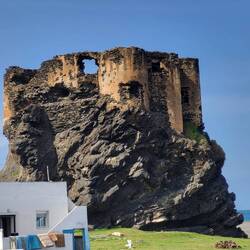 Nach ein paar Abschiedsworten und gegenseitigem Adressenaustausch mit einem uns sympathischen Schweizer Paar verlassen wir den idyllischen Flecken Erde über der Cala Iris. Der nächtliche Regen zwei Nächte vorher, hat in der Bucht einen Erdrutsch ausgelöst. Geröll und umgekippte Strassenlampen blockieren die rechte Fahrspur. Heute soll es auf der Rocade RN16 entlang am Rande des Rifgebirges bis nach Oued Laou gehen. Die Strasse verläuft vorerst ins Landesinnere. Kurvenreich, auf und ab. Eine eindrückliche Berg- und Küstenwelt zeigt sich uns hier. Immer wieder entdecken wir Heuballen, welche wie grosse Pilze in der Landschaft stehen. Im kleinen Fischerdorf El Jebha machen wir einen kurzen Kaffeehalt. Ein guter Platz um dem Tagesgeschehen etwas zuzuschauen. Fischer sind mit ihren Netzen beschäftigt. Kleine Mädchen versuchen uns mehrmals Brot zu verkaufen. Auf dem gegenüberliegenden Parkplatz stellt ein Chauffeur seinen qualmenden Bus hin. Ein Bus der "École de science Al-Hoceïma". Die Studenten steigen aus und freuen sich über den unvorhergesehenen Halt. Schnell haben sie sich in die diversen Restaurants verteilt. Der Busfahrer wirkt etwas hilflos. Der Qualm über dem vorderen linken Reifen scheint ihm grösseren Kummer zu bereiten... ob es wohl eine glühende Bremsscheibe ist, nach dieser Berg- und Talfahrt? Wir setzen unsere Reise bergauf und bergab an der eindrücklichen Steilküste fort. Im mittelalterlichen Örtchen Tarha gibts einen Fotostop. Die Bucht ist von Felsen umrahmt und auf einem thront eine alte, verfallene Kashba. Peter fragt sich, ob hier wohl Rapunzel auf zurufen hin ihr sehr langes Haar vom Dachfenster aus heruntergelassen hat...