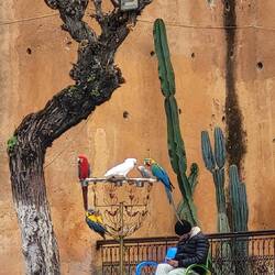 Freudig stellen wir fest, dass entgegen den eher schlechten, regnerischen Wetterprognosen uns bereits beim Frühstück die Sonne ins Gesicht lacht. Es soll ein sehr entspannter Tag werden. Wir haben uns keine grossen Unternehmungen vorgenommen und leben etwas in den Tag hinein. So darf ein guter Kaffee und frisch gepresster Orangensaft im bereits bewährten Hotel Omeya nicht fehlen. Auf der windgeschützten Terrasse lassen wir uns die Sonne ins Gesicht scheinen. Ein gutes WiFi erlaubt es die neusten News von einem bekannten Youtuberpaar, welchem wir auf unserer Reise bei der Plage Bhibah und in Essaouira begegnet sind anzuschauen. Sie berichten über Eisglätte die sie beinahe ins Verderben gebracht hat und anschliessendem kleinen Crash mit einem parkierten marokkanischen PW. Geschehen im Mittleren Atlas auf ihrer Fahrt in Richtung Meknès. Wir sind zum Glück von solchen unangenehmen Herausforderungen verschont geblieben. Cross fingers... und touch wood!