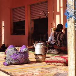 Die Herstellung dieser Brote erfolgt noch oftmals in einem sehr einfachen Brotofen. Auch dieser friedliche Moment mit Anaïs zusammen in der Nähe von AïtBenhaddou, beim backen ihres Fladenbrotes bleibt in schönster Erinnerung.
