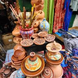 Schöne Lederartikel besonders die Babouches (Schuhe) haben mich ein paar Mal zum Kauf verleitet. Gewürze und ätherisches Öl, Arganöl, Teemischungen und Rosenwasser gehören ebenfalls zu meinen Erinnerungskäufen.