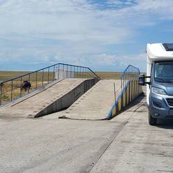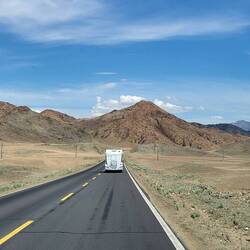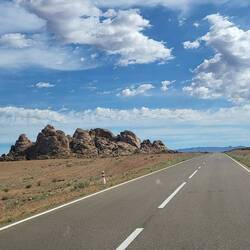 Für die nächsten Etappen entschloss die "Rennleitung" möglichst gute Strassen zu wählen, da die vorangehenden Strapazen an allen Wohnmobilen ihre Spuren hinterlassen haben. Auch wir erwischten in der Halbwüste einen bösen Schlag auf den vorderen linken Stossdämpfer. Aber es scheint alles in Ordnung zu sein.