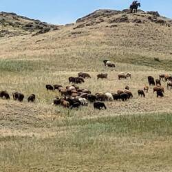 Unsere Wanderung ging weiter an einer Nomadensiedlung vorbei. Ein kräftiger Hirtenhund mit weissen Pfoten und "Rastapelz" lag völlig entspannt vor einer Jurte. Allzu nahe wollte ich ihm nicht kommen. Aber ein Foto musste sein. Er erinnerte mich an das Märchen mit dem Wolf und den sieben Geisslein und den weissen, mehligen Pfoten...