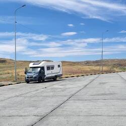 Bei 40°C erreichten wir nach 17.00h ein ehemaliges Autogewerbegelände direkt neben der Autobahnausfahrt, in Kuytun. Für die leerstehenden Hallen sind Geschäfte und Restaurants geplant. Die Vorplätze für Wohnmobile.
