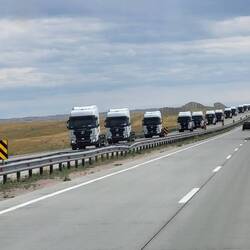 Noch ein kurzes Meeting, dann los, in Richtung Sammelpunkt bevor es im Konvoi an die Kasachisch-, Chinesische Grenze weiterging. Für alle ein aufregender Moment. Die Kasachisch- Chinesische Grenze erstreckt sich über etwa 1'780 Kilometer und ist eine der längsten Landgrenzen Chinas. Sie verläuft durch die zentralasiatische Region und trennt Kasachstan vom westlichen China. Wir überquerten den Grenzübergang "Nurli Jol". Von der Kasachischen Seite her winkte uns Ararat "auf Wiedersehen! Bis im September!"