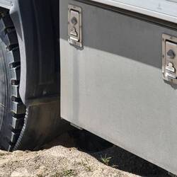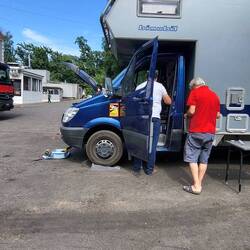 Das Fahrzeug von Ruth und Jean-Claude war mit neuen "Silberstreifen" um die Aufbautür herum versehen... die Türe konnte nicht mehr abgeschlossen werden. Dank professionellem Einsatz von Torsten und Adi konnte dieses Problem gelöst werden.