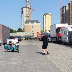 Die gesamte Zollabfertigung dauerte ungefähr 8 Stunden. Giotti wurde geröntgt und desinfiziert. Wir wurden belehrt, dass unsere Strassenkarten falsche Angaben zu gewissen Regionen enthalten. Die Karten werden vernichtet. Gerne werden wir euch zu gegebener Zeit ebenfalls aufklären. Hier würde dies den Rahmen sprengen... Während der Wartezeit "bespasste" uns BeifahrerInnen der Chinesische Guide und verteilte schon mal Yuan (Chinesische Landeswährung) und eine SIM-Karte. Als alle Fahrzeuge die ersten Kontrollen hinter sich hatten, durften wir BeifahrerInnen wieder zurück in unser " Zuhause". Wir fuhren im Konvoi, mit Warnblinker und Sondergenehmigung hinter dem offiziellen Begleitfahrzeug, ohne gültige Nummernschilder, auf den Parkplatz des Holliday-In Hotelkomplexes in Khorgos. Ungefähr ein Kilometer. Mit drei weiteren Stunden Zeitverschiebung kamen wir gegen 20.00h an. Dies alles aus Goodwill, damit wir nicht auf dem Zollgelände die Nacht verbringen mussten.