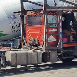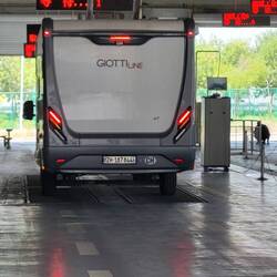 Gut, es ging im Linienbus weiter zum Zollfreilager wo unsere Wohnmobile bereits gegen 40°C aufgeheizt waren. Im Konvoi, mit Warnblinker zogen wir weiter zum Chinesischen TÜV. Vorerst nochmals auf die Waage...über Nacht hatte unser Giotti kein Gewicht verloren...die Waage scheint sehr genau zu sein.