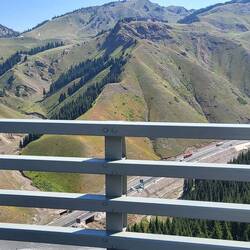Mit einem " hoffentlich Aufwiedersehen in Jarkent...und sonst beim Abschlussabend..." verabschiedeten wir uns von Gaby und Wolfgang in Almaty. Bevor wir die Stadt ganz hinter uns liessen, gings noch in ein Einkaufszentrum um die Vorräte zu ergänzen. Trotz ~30 Kilometer Umweg machten wir unterwegs einen Abstecher in den Ile-Alatau Nationalpark, bei Turgensai.