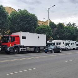 Kurz vor Mitternacht trafen Wolfgang, Gaby, Gerd und Ararat auf dem Platz ein. Das Bimobil im Abschleppmodus. Ararat hielt auf der Autobahn einen Abschleppwagen an. Dieser zog das Fahrzeug mit, bis sein Motor überhitzte. Auf ein Neues stoppte Ararat abermals einen Abschleppwagen, welcher das Fahrzeug bis kurz vor den Stellplatz fuhr. Das Fahrzeug rollte zum Schluss auf das Gelände. Die Motorsteuerung ist ausgestiegen.