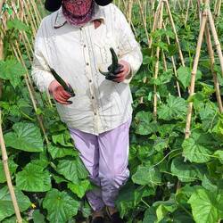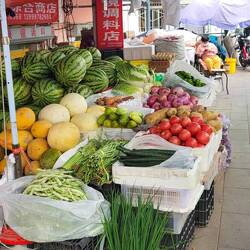 Sobald sich die Wolken verzogen hatten, machten wir, Edith, Silke, Gaby und ich uns auf Erkundungstour in einen reichhaltigen Gemüsegarten. Mit unserer Vermutung, es handle sich um eine Gärtnerei lagen wir daneben. Eine gut eingepackte Chinesin freute sich uns die verschiedenen Gemüsebeete stolz zu zeigen. Schade, dass die Kommunikation sehr erschwert ist. Dank Übersetzungsprogramm konnte ich ihr unsere Bewunderung mitteilen, was sie sehr freute. Sie pflückte Schlangengurken und überreichte diese uns. Dabei machte sie Zeichen, dass man diese Gurken brechen muss. So frisch gepflückt ein wahrer Genuss.