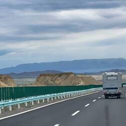 Das Fahrverhalten der Kasachen lässt für uns keine Unaufmerksamkeit zu. Sie hupen, drängeln und überholen von rechts und links. Im Iran fühlten wir uns trotz Chaos auf den Strassen sicherer. Toleranz und Flexibilität gingen Hand in Hand über. Hier in Kasachstan scheinen wir eher ein rollendes Verkehrshindernis für die einheimische Bevölkerung zu sein. Der Menschenschlag lässt auch selten ein Lächeln über seine Lippen gleiten, wenn wir auftauchen.