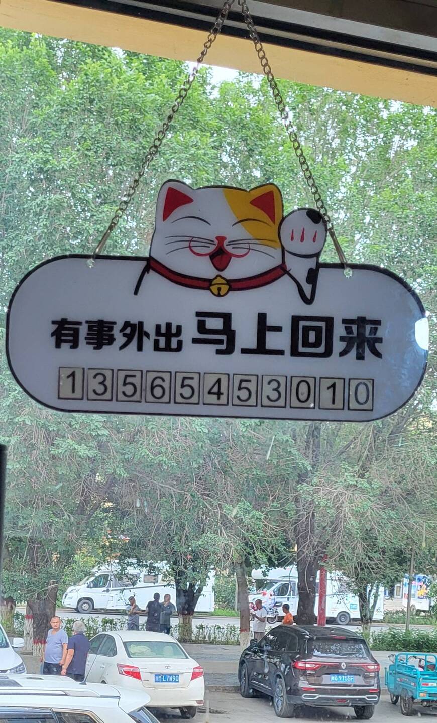 Heute mussten wir nochmals Kilometer gut machen, damit wir rechtzeitig die Grenze zur Mongolei am 3. Juli erreichen. Von Hoboksar aus gings wieder im Schlepptau der Polizei möglichst schnell auf die Autobahn. Richtung Nordosten. Ziangh bemühte sich bei der Polizei darum, dass wir ein wenig mehr als nur Autobahn, Steppe, Wüste und Zahlstellen sahen. Deshalb verliessen wir gegen Mittag die Autobahn und fuhren in eine kleine Stadt hinein. Mit grossen Augen wurden wir von der einheimischen Bevölkerung begutachtet. Die Mittagspause verbrachten wir individuell. Peter nutzte die freie Zeit für einen Coiffeurbesuch. Der Frisör freute sich offensichtlich über die Langnase. Während Peter sich unter die fachkundigen Hände setzte, schaute ich mich etwas in den Geschäften um. Ein einfaches Gemischtwarenladen- Angebot dominierte die Ladenstrasse.