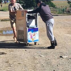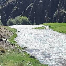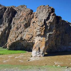 Bei der Chulun Schlucht machten wir einen kurzen Besichtigungshalt. Ein paar Fotos und Hilfeleistung von Peter an zwei jungen Angestellten beim Aufstellen des Softeisstandes...und schon ging es weiter.