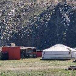 Nach so viel Staub und Sand genossen wir den Luxus einer Dusche in einer der Jurten. Das kleine Ferienresort wirkt sehr gepflegt und neu.
