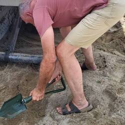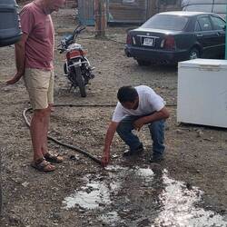 Richtig wach und voller Energie begann ich die Küchenschränke aufzuräumen und reinigen. Währenddem war Peter mit Gerd zusammen beschäftigt, für 24 Personen ein Gulasch für das gemeinsame Nachtessen vorzubereiten. Rings um uns wurde geflickt, geputzt und Wäsche gewaschen. Auch unsere Kleidung wurde mit Seewasser in der kleinen "Waschhexe" von Staub und Schweiss befreit. Da das Wasser leicht salzhaltig ist, hat die Wäsche eine Stärkung erhalten. 😅