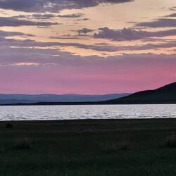 Warm eingepackt tranken Peter und ich draussen bei untergehenden Sonne einen Tee, mit Blick über einen der ältesten Seen der Mongolei. Er hat eine Fläche von etwa 194 Quadratkilometern und ist für seine reiche Vogelwelt, insbesondere für Zugvögel die dort rasten bekannt.