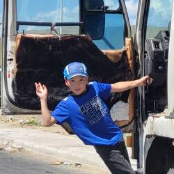 Auf der Weiterfahrt gabs einen kurzen Halt vor einem Brotstand. Wir deckten uns mit dem ofenwarmen Brot ein. Während diesem kurzen Halt zückte die einheimische Bevölkerung ihre Handys um zu fotografieren, Videos zu drehen und per Videocall von uns zu berichten. Eine Frau drückte mir ihr Handy in die Hand, damit ich von mir ein Selfie mache....Anscheinend gibt es in dieser Region kaum westliche Touristen.