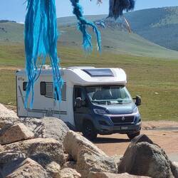 Sie kam etwas desillusioniert mit der Nachricht zurück, dass die bereits von der Polizei vorbereiteten Papiere nicht mehr auffindbar seien. Die Warterei ging weiter bis Ziangh sich um 12.00h mit drei "guten Nachrichten" an uns wendete: Wir durften zurück auf das Holiday-Inn Gelände inkl. einem Duschzimmer. Die Agentur lud uns auf 19.00h zu einem 8 gängigen Nachtessen ein. Für den morgigen Tag gehe es unter Polizeiescorte 420 Kilometer durch die chinesische Schweiz, auf der Autobahn weiter in Richtung Mongolei. Dies ohne gültigen Fahrausweise. Das Problem lag an unserem Alter und der Länge des Fahrzeuges. Ab 60 Jahren darf man in China kein Fahrzeug führen das über 6 Meter Länge aufweist. Ohne zu murren, haben wir diese Neuigkeiten aufgenommen. Als Alternative wäre wohl die Rückkehr nach Kasachstan gewesen. Am 3. Juli gehts durch die Mongolei für 23 Tage. Danach gibts eine zweite Einreise nach China, für 39 Tage. Für Abenteuer-Touren spielen wir eine Pionier-Rolle. Dieser Grenzübergang und die Route ins autonome Gebiet Xinjiang / Uigurien im Nordwesten Chinas wurde neu gewählt. Grund dazu ist der Boykott Deutschlands gegenüber Russland. Als Deutscher Reiseanbieter ist russisches Territorium ein Tabu. Vor der Pandemie und dem Ukrainekrieg führte der Weg ins Reich der Mitte über Russland. Dies klappte ohne grossen Probleme bereits 15 Mal.