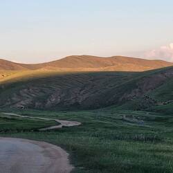 Die 437 Kilometer verflogen heute wie im Nu. Während wir über die guten Strassen im Konvoi herfuhren, hörten wir uns die Musikplaylist von Peter an. Zu Klängen von Queen, Muse, Beatles usw zog eine abwechslungsreiche, eindrückliche Landschaft an uns vorüber. Steppe, Wüste, fruchtbares Ackerland, glitzernde Bäche die sich aus dem Altai-Gebirge in die Hochebenen ergossen und immer wieder weidende Kamele bleiben mir in guter Erinnerung.