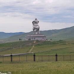 Frisch gestärkt begaben wir uns nach der Mittagspause zum monumentalen Reiterstandbild des Dschingis Khan. Der Standort Tsonjin Boldog in der Provinz Töw-Aimag, ist ein Platz, an dem Dschingis Khan einer Legende zufolge ein goldener Reitstock gefunden haben soll. Die Statue zeigt ihn auf dem Rücken eines Pferdes sitzend mit dem Reitstock in der rechten Hand.