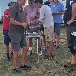 Einen gemütlichen Abend zu ehren von Gerd und seiner Pensionierung, versus der Schweiz mit ihrem Nationalfeiertag, verbrachten wir unter einem grossen Zeltdach.