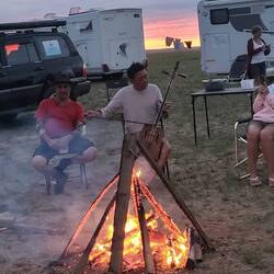 Gerd hatte vorgängig eine Feuerstelle eingerichtet, die im Windschatten des Teamfahrzeuges stand. In Gesprächen vertieft, das lodernde Feuer vor uns, mit einem Bier, Glas Wein oder Baileys in der Hand und nochmals die Weite geniessen. So verbrachten wir ein, zwei Stunden.