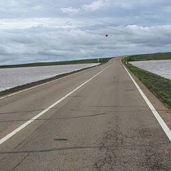 Der Himmel verdunkelte sich allmählich. Unterwegs fuhren wir an überschwemmten Steppengebieten vorbei. Die Strasse blieb vorerst von den Wasserfluten verschont.