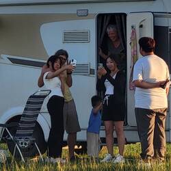 Den Heimweg traten wir in Begleitung einer Hündin an. Sie wich kaum von unserer Seite. Den Abend verbrachte die Hündin jedoch vor der Eingangstür bei Edith und Adrian, in Gesellschaft der halben Reisegruppe. Dabei sassen auch Dani und Achim, welche die Hündin tagszuvor gefüttert hatten. Hunde vergessen nie...Read more