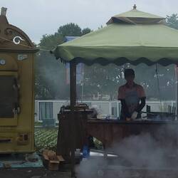 Zufrieden gesättigt mit "Sweet and Sour Balls" und Bergnudeln, mit irgend einem grünen, unbekanntem Gemüse gemischt, für Peter und mich und einer Rippliplatte für Ruth und Jean-Claude, stürzten wir uns anschliessend in die nicht endende Menschenflut.
