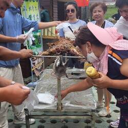 Die Wirtsleute meinten es gut mit uns. Zuerst wurde eine Reissuppe gereicht. Ich habe noch nie Abwaschwasser getrunken...aber so könnte es schmecken. Wir liessen die Suppe stehen. Den fermentierten Chinakohl hingegen assen wir gerne. Dann kamen die bestellten Nudeln mit Chicken und Schweinefleisch. Etwas makaber mutete das Hühnerfüsschen an. Ich ass nur die Nudeln. Diese mundeten hervorragend. Erwähnenswert ist auch, dass wir nur noch mit Essstäbchen und Löffeln essen. Gerade bei Nudeln die sehr rutschig sind eine Höchstleistung. 😅