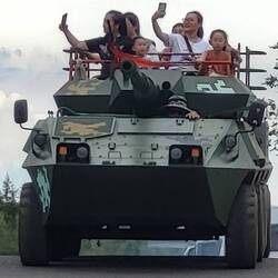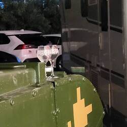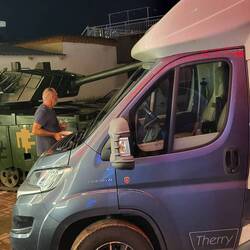 Für die Nacht mussten wir anschliessend noch einige Kilometer in dichtem Abendverkehr hinter uns lassen. Die Anfahrt zum Stellplatz war die Krönung des Tages. Nach mehrmaligem rückwärts fahren fanden auch wir noch unsere Bleibe, neben einem Schützenpanzer.