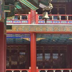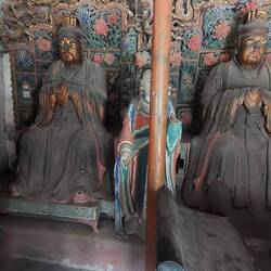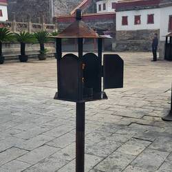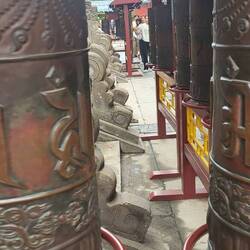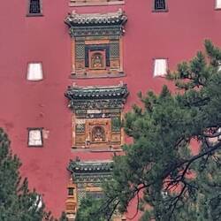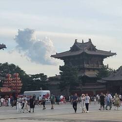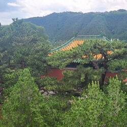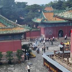 Ausser Gerd, Ingrid und ich stürzte sich unsere Gruppe ins Gedränge und liess sich durch die schmalen Stiegen und Galerien von all den anderen Touristen schieben. Das Kloster vereinte während seiner Zeit gleich drei Religionen. Deshalb sitzen in der hintersten und obersten Minihalle Lao Zi, Buddha und Konfuzius vereint nebeneinander. Peter und der Rest der Gruppe kamen verschwitzt aber um eine einmalige Erinnerung reicher und zufrieden zurück. Vom Touristenzentrum aus hatte ich einen schönen Blick auf das Kloster und fing ein paar "Instagram" Bilder mit dem Handy ein.