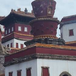 Durch den Morgenstau auf der Strasse nach Zaisan gings direkt in den Süden von Ulan Bator zum Bogd Khaan Palace Museum. Gemäss Nyama leben in diesem Stadtteil die Schönen und Reichen. Etwas verloren zwischen Hochhäuserschluchten machten wir den ersten Halt vor den drei Toren zum ehemaligen Winterpalast des achten Jebtsumdamba Khutukhtu, der später als Bogd Khan oder Herrscher der Mongolei proklamiert wurde. Der Palast ist heute ein Museum. Er wurde 1905 nach Plänen eines russischen Architekten im Auftrag von Zar Nikolaus II. erstellt.