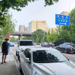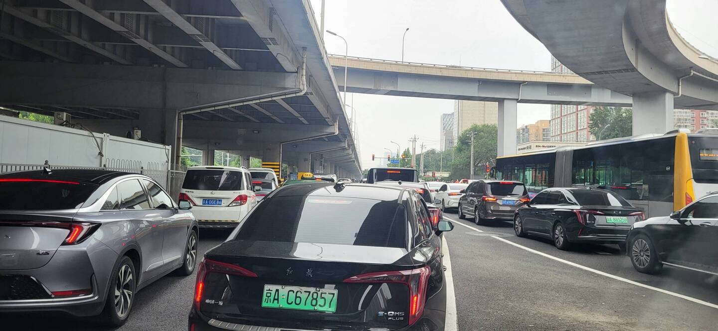 Im Montagmorgenrush liessen wir uns dem 3. Ring entlang mit all den millionen Berufstätigen durch den Verkehr treiben. So viele Elektromofas und Fahrräder auf eigener Fahrspur habe ich sonst noch nirgendwo gesehen. Wir folgten den uns empfohlenen Koordinaten. Relativ schnell kamen wir so auf einen Expressway wo sehr wenig Verkehr herrschte, wenn nicht gerade eine Auffahrkollision vorangegangen war. Dies drei Mal rund um Peking.