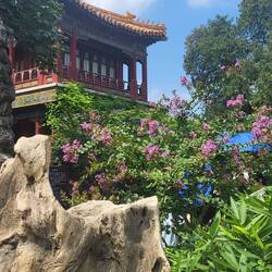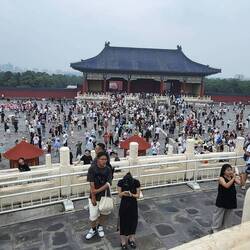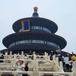 Kaum hatten wir diesen Programmpunkt hinter uns gelassen gings gleich weiter zum Himmelstempel. Diese grösste, älteste, kultisch bedeutendste und architektonisch vollkommenste der kaiserlichen Kultstätten ist symboldurchdrungen wie wenige andere Bauwerke. Der Kaiser opferte auf der offenen Terrasse dem Himmel und dessen Erscheinungen (Gestirne, Wetter) im Rahmen eines mehrstündigen, von Musik begleiteten Rituals in der längsten Nacht des Jahres, und im Frühling bat er in der nördlichen Tempelhalle (nach der man die Anlage auch "Himmelstempel" nennt) um das rechte Wetter und für eine gute Ernte.