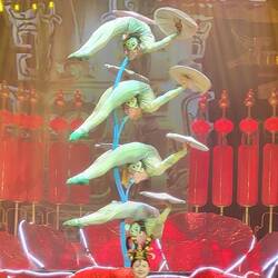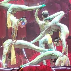 Eine Stunde freie Zeit blieb uns, bevor es weiter zu einer Akrobatik Show ging. Etwas gebremst im Enthusiasmus, nach der "Peking Oper Erfahrung", bezogen wir unsere nummerierten Sitze. Kaum begann die Show, kamen wir nicht mehr aus dem Staunen und Mitfiebern raus. Eine Show der Superlativen wurde uns da präsentiert. Diese Vorführung über eine Stunde verflog im Nu.