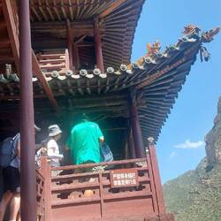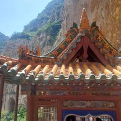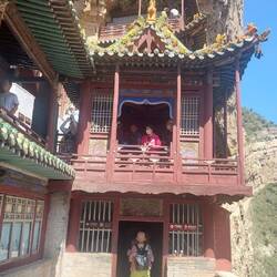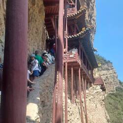 Dass dieses Kloster, wie der chinesische Name sagt, " im Leeren hängt" (Xuangkong Si), ist zwar fromme Übertreibung, doch abenteuerlich wirkt er schon der Bau, wie er auf spindeldürren Stelzen an einer überhängenden Felswand balanciert. Leider verdirbt eine Staumauer etwas oberhalb den Anblick der dramatischen Schlucht, in der sich diese kleine Mönchszuflucht (95m²) einst vor der Welt versteckte. Inzwischen wurde sie Opfer ihres eigenen Ruhms.