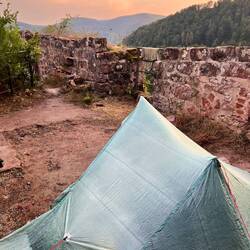 Nach ausreichender Hydrierung mittels isotonischen Getränken geht’s nach knapp 26Km zum anvisierten Campspot der Burgruine Froensbourg.