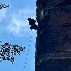 Über viele schöne Abschnitte erreiche ich gegen 17.00 Uhr mein Tagesziel Camping du Rocher bei Dabo. Dieser überschaubare Platz ist ein wahres Hikerparadies, die Pächterin, eine Holländerin, ist supernett und kümmert sich liebevoll um ihre Gäste. Am Abend fahren wir zu fünft in ein kleines Restaurant und verbringen einen entspannten Abend bei Pizza und Bier.