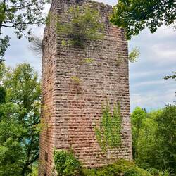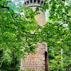 Die Sonne gibt ihr Bestes und macht das bekraxeln der Burgen doppelt schwer, daher lasse ich gerne zwei davon links liegen und bevorzuge den Schatten des Waldes. Im Chalet du Wintersberg, am Col de Liese genehmige ich mir ein Gläschen Panache bevor ich mich an den Aufstieg zum Tour de Grand Wintersberg auf 581m Höhe mache. Gebaut um 1890 hat er eine Gesamthöhe von 25m.